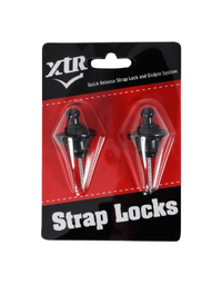 Straplock set. Popular style to securely fasten a guitar strap to your guitar. Spring loaded full release. All metal parts. Includes mounting screws. Full colour blister packaging. Black. Pair