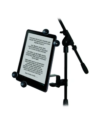Universal tablet holder. Multi adjustable to suit most tablets with 178-356mm screen size. Bracket and clamp attaches to mic. stand and secures the tablet for easy access and viewing. Tablet holder can also be separated and screwed directly onto microphone desk and floor stands with a 5/8” thread. Suits post diameter up to 25mm.
