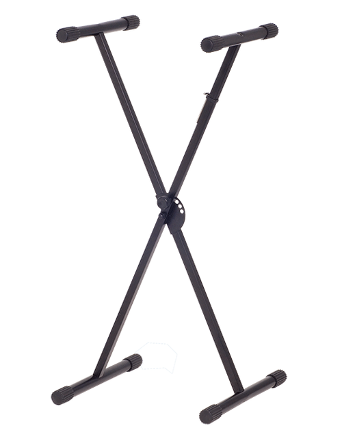 The KS120 is a single-braced 'X'-style keyboard stand from Xtreme stands. Features 35cm arms, and a 5-position centre height adjustment (64-98cm), with a springloaded lock.