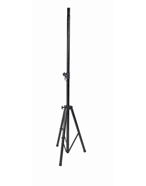 Heavy duty steel, 2 section with reversible 35/38mm diameter centre tube. Folding tripod base, diecast leg housing and safety locking pin. Height adjustable 1.14m to 2.0m. Black. Load capacity 60 kgs. Stand weight 4.3 kgs