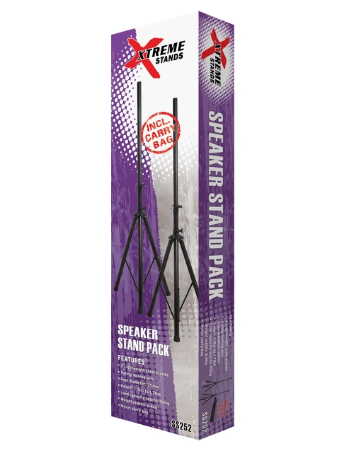 2 section with 35mm diameter centre tube. ABS leg housing and safety locking pin. Folding tripod base. Height adjustable 1.18m to 1.78m. Black.