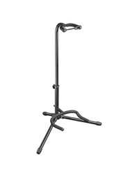 Tubular style guitar stand. Lighter weight, Z folding tripod design featuring soft EVA foam rubber instrument protection for neck and body. Neck safety lock.