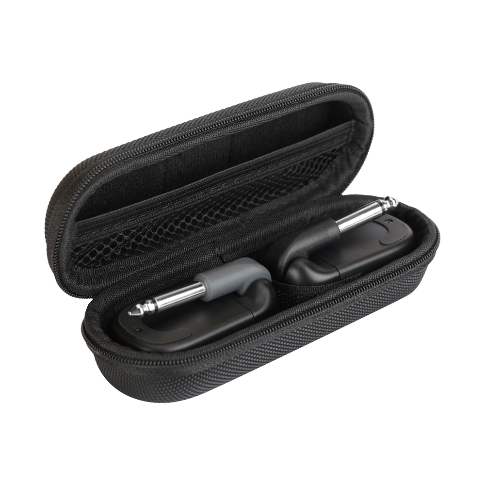 A rugged, compact carry case is included, to protect your transmitter, receiver and charging cable wherever you go. Charge the transmitter and receiver at the same time using the dual USB-C cable and any 5V 2A USB power supply. Charging for two and a half hours gets you 5 hours of play time; 1.25 hours gets you 2 hours of play time, and 30 min of charging gets you 1 hour. The units can be used while charging, but keep in mind that it’s best for the long-term life of the batteries if you don’t leave them plugged in and fully charged for extended periods.