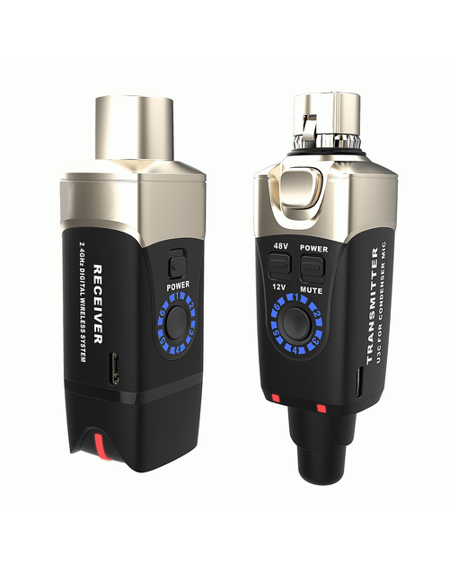 The Xvive U3C wireless aims to take the complexity and frustration out of traditional wireless microphone systems. Creating a flexible, all in-one solution that makes any of your condenser microphones into wireless. Plug-on 2.4GHz wireless band XLR transmitter and XLR receiver for XLR microphones, audio mixer, PA system. Equipped with +12V and +48V phantom power accommodates your conderser mics with zero fuss. Less than 5ms of latency for distraction-free performance. Up to 90 feet of wireless range (dependent on environmental factors). Rechargeable batteries with 3-7 hours of battery life.