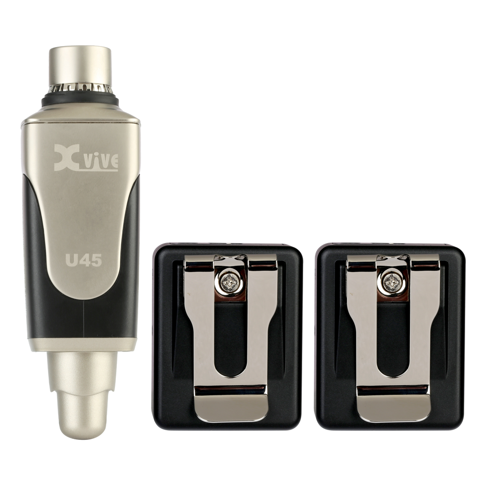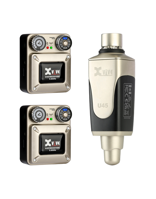 The Xvive U45R2 Complete 5.8 GHz In Ear Monitor System comprises of the U45 Transmitter and two U45 belt pack recievers.