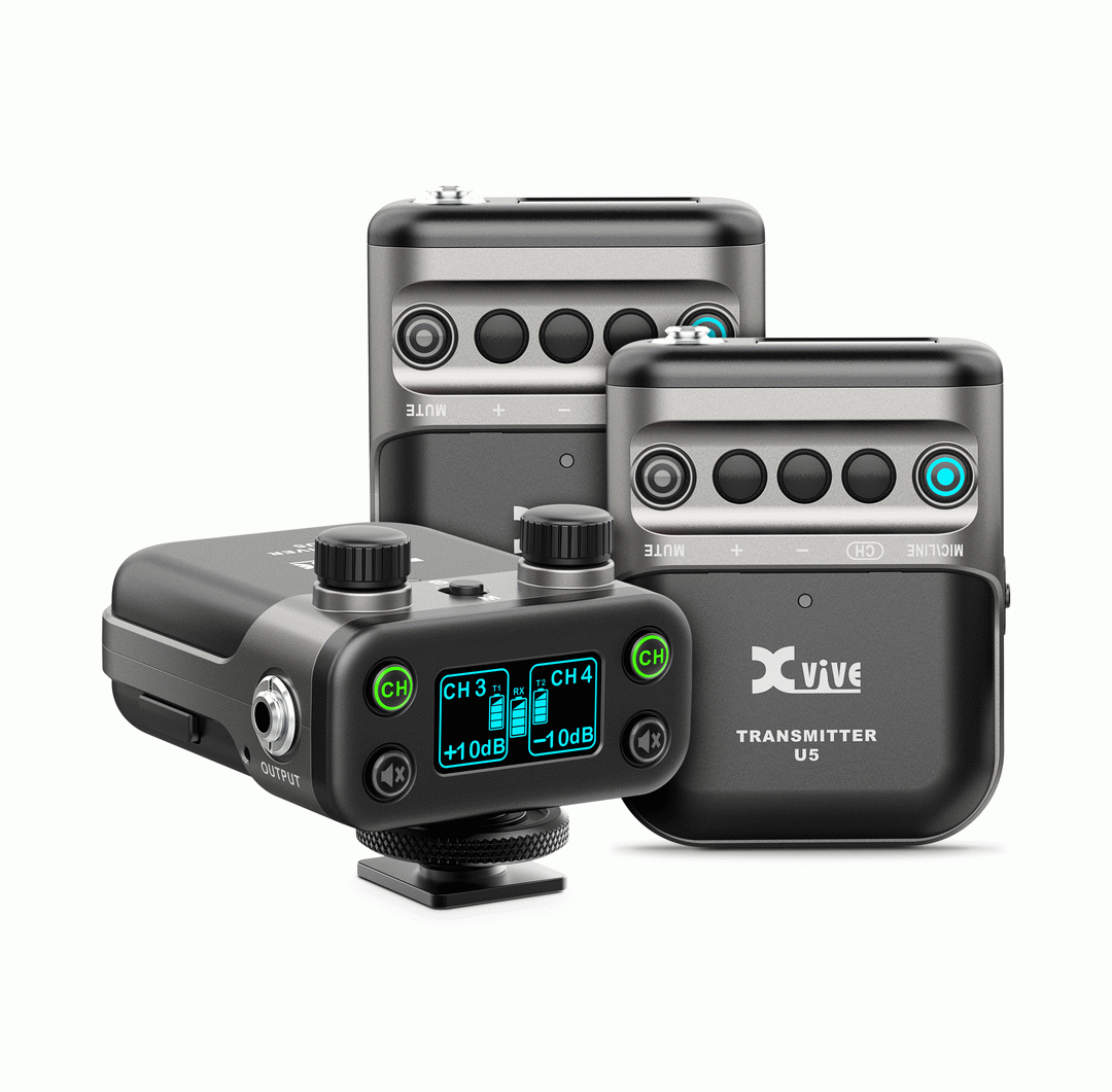 Xvive U5T2 Camera-Mounted Wireless Audio for Video System 2x Transmitters 1x Receiver