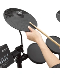 Yamaha knows everything there is to know about drums. That’s how they were able to produce a compact design without compromising the essence of the drum. You can adjust the position and angles of the cymbals, snare, and tom as you wish, and perform in the correct posture. The DTX is equipped with a kick drum tower, comes with a bass drum pedal and additionally includes a three-zone snare pad for head, rim-shot and cross-stick sounds.