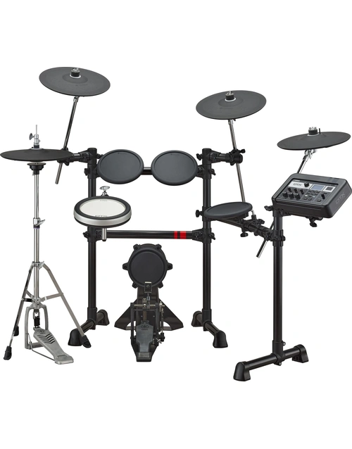 The Yamaha DTX6K2-X delivers an incredibly expressive drumming experience with compact, high-performance features. At its heart is the DTX-PRO module, which combines studio-grade drum samples with intuitive sound-shaping controls using AMBIENCE, COMP, and EFFECT knobs. The snare features Yamaha’s acclaimed TCS (Textured Cellular Silicone) head for a responsive, acoustic-like feel, while the 3-zone crash, ride, and snare pads offer dynamic control, including choke and positional sensing. A real hi-hat stand and snare arm further enhance playability, and the KP90 kick pad ensures satisfying rebound and realism.