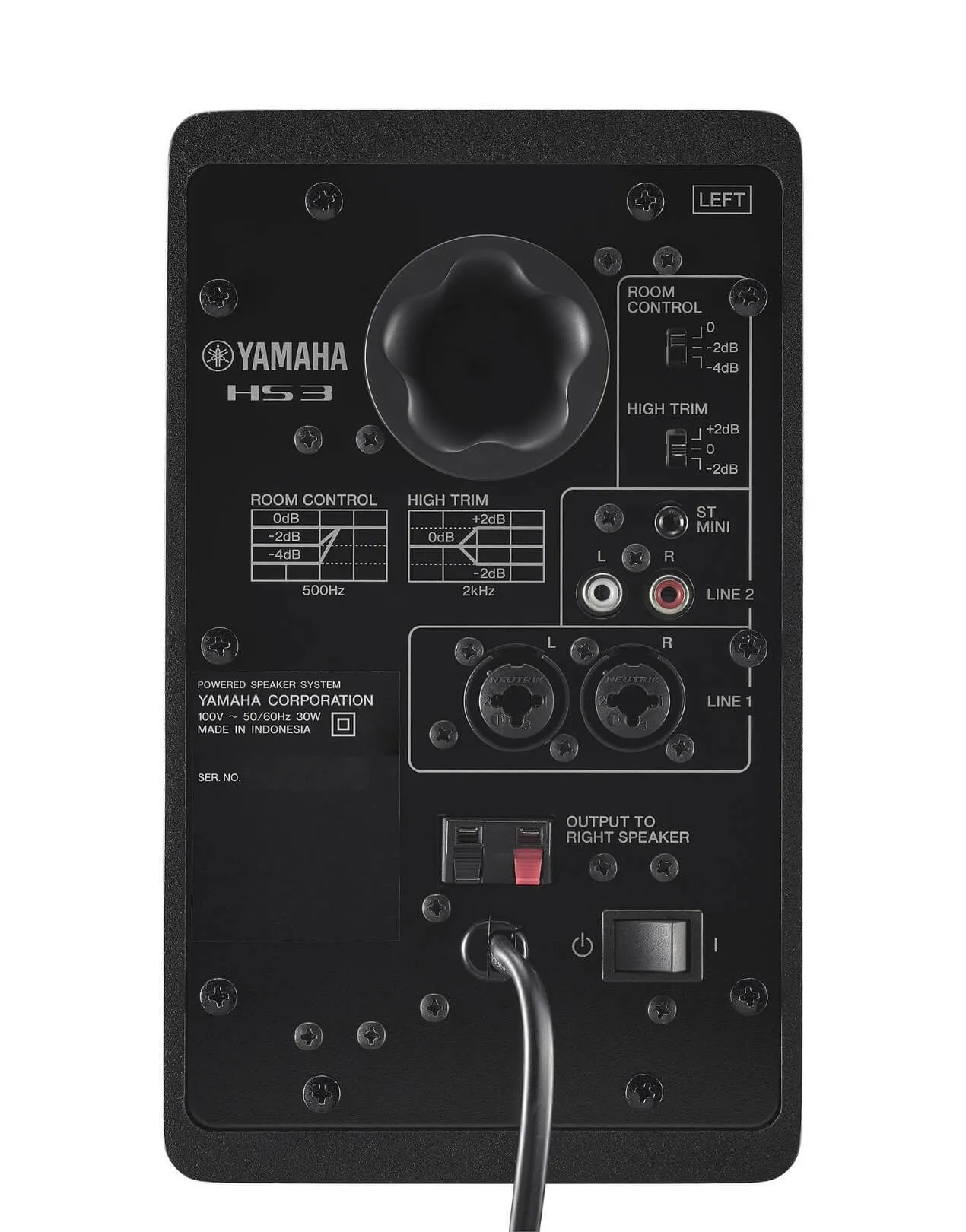Unleash your creativity with the Yamaha HS3 3.5" Studio Monitor Pair in Black. These compact studio monitors uphold the legacy of the HS Series, trusted by top audio professionals worldwide. Designed for creators with limited space, the HS3 delivers uncompromising monitoring quality. Crafted with precision, featuring a high-performance class-D amp, resilient MDF cabinet, and proprietary "Twisted Flare Port" technology for clear, accurate bass. The HS3 ensures sound fidelity, resolution, and depth across all frequencies. Tailor your sound to any environment with ROOM CONTROL and HIGH TRIM functions, combating unwanted low-end issues. Versatile inputs include XLR/TRS, RCA, and stereo mini connectors, while the front-panel power button, volume knob, and headphone connector provide easy access. Portable and efficient, the Yamaha HS3 is your go-to studio companion.