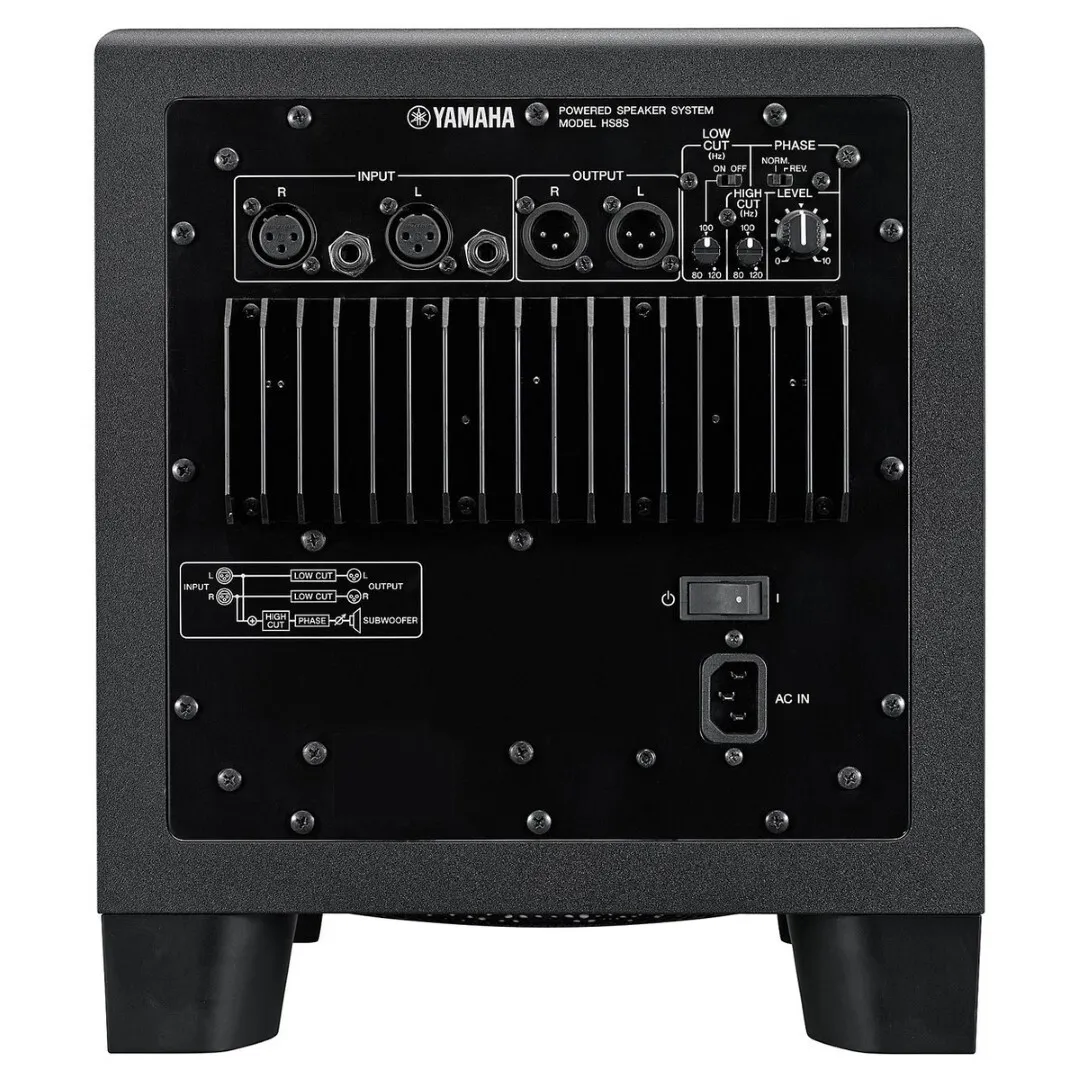 Ever since the 1970's the iconic white woofer and signature sound of Yamaha's nearfield reference monitors have become a genuine industry standard for a reason - their accuracy. Unlike studio monitors with added bass or treble frequencies which may sound more flattering at first, HS Series speakers were designed to give you the most honest, precise reference possible, providing an ideal sonic platform to build on throughout the mixing process. By combining acquired knowledge and expertise with state-of-the-art sound technologies, Yamaha's speaker engineering team have examined, then optimized, every aspect that has contributed to making these monitors the most trusted in the business. The HS8S is a powerful 150 watt, 8" active bass-reflex subwoofer capable of delivering frequencies down to 22Hz. Features a phase switch to simplify phase alignment during initial setup