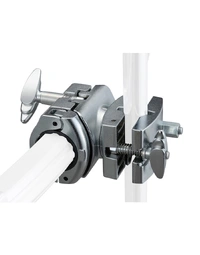 The HXOCII open clamp is used to attach tubes having different thickness (diameter 15-34mm, including hexagonal tubes) to the hexagonal tube. Although fine angle adjustment is possible with the gear joint, more stable setting can be achieved by limiting the movement only to the vertical direction.