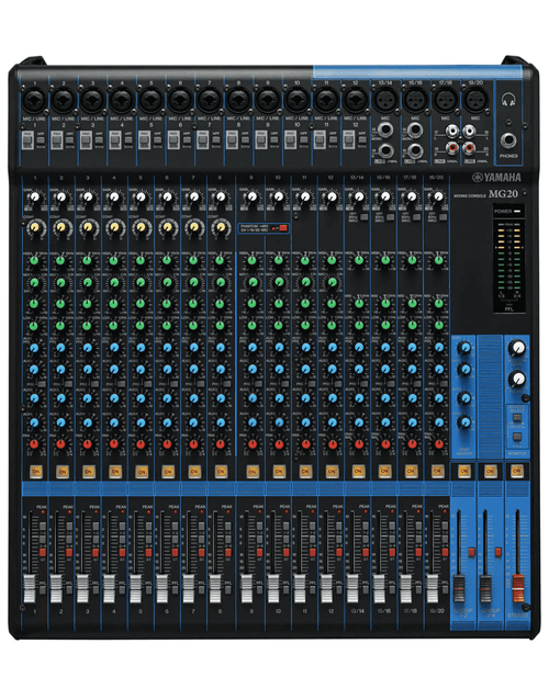 At Riffs & Licks Music, we think that whether you're a live sound engineer, studio producer, or musician seeking to refine your sound, the Yamaha MG20 20-Channel D-Pre Mixer is an excellent choice, thanks to its outstanding features, professional sound quality, and rugged build.