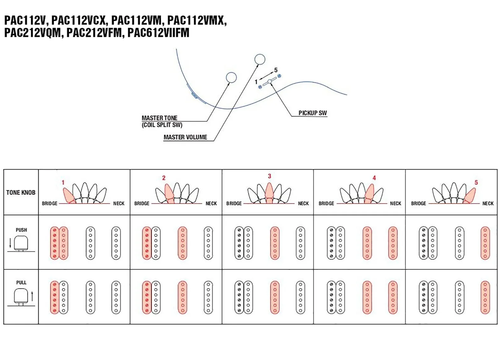 | Controls | Master Vol, Master Tone (Push/Pull Dry Switch), 5-Way Pickup Switch |