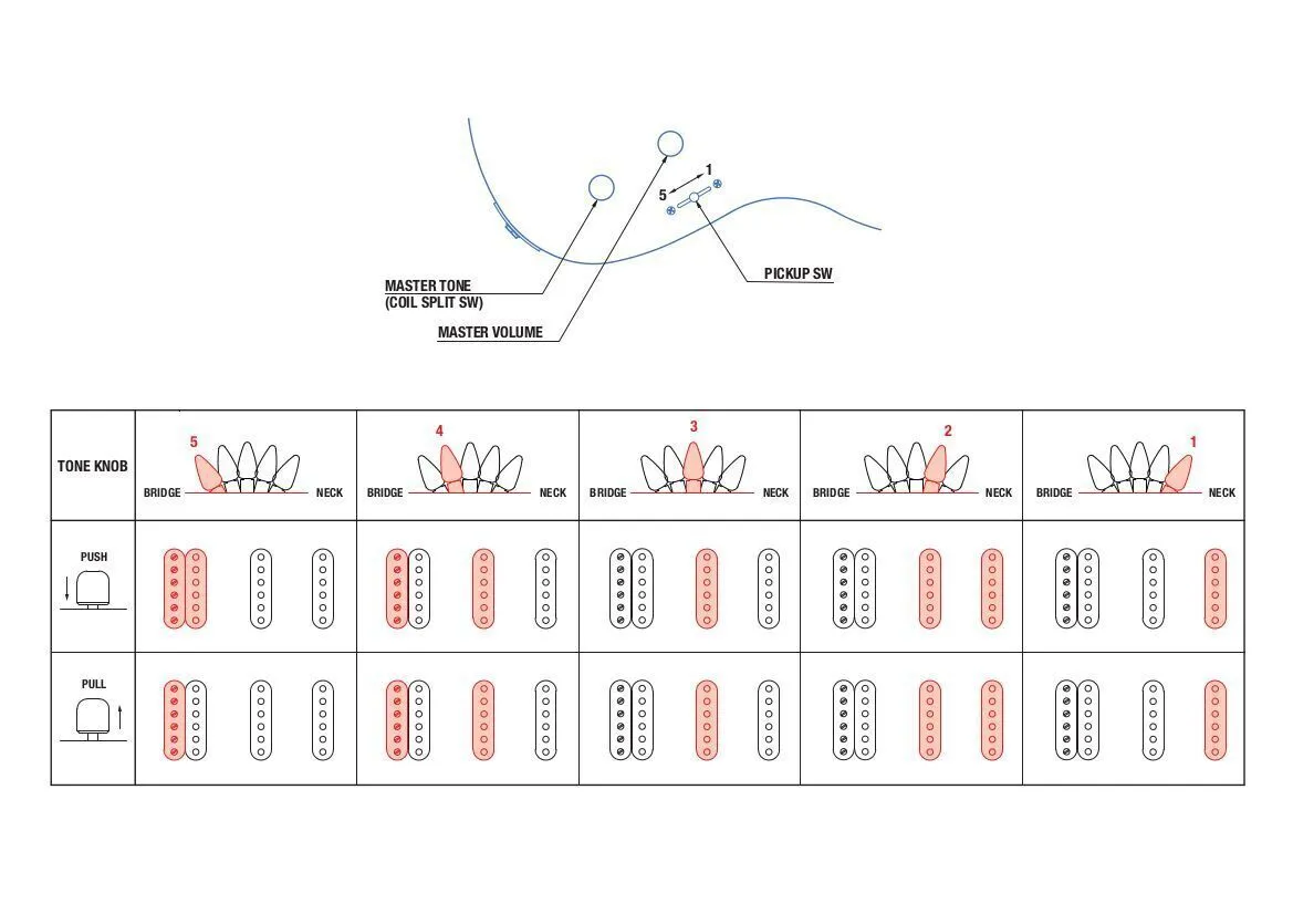 | Controls | Master Vol, Master Tone (Push/Pull Coil Split Switch), 5-Way Pickup Switch |