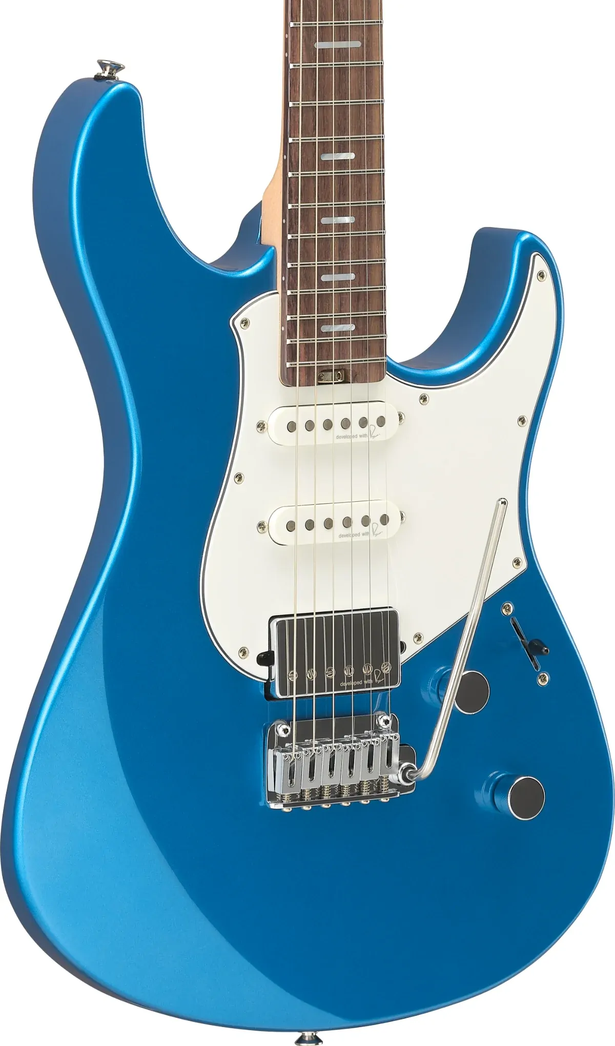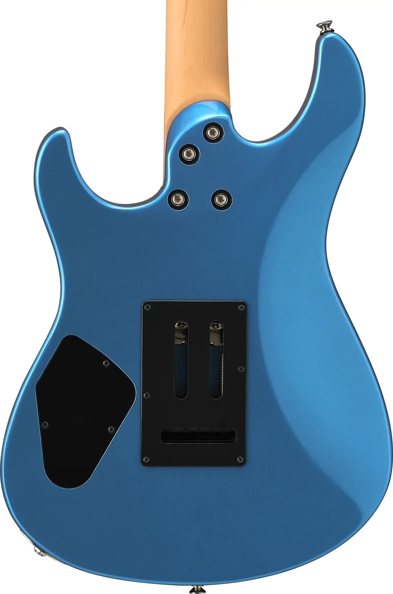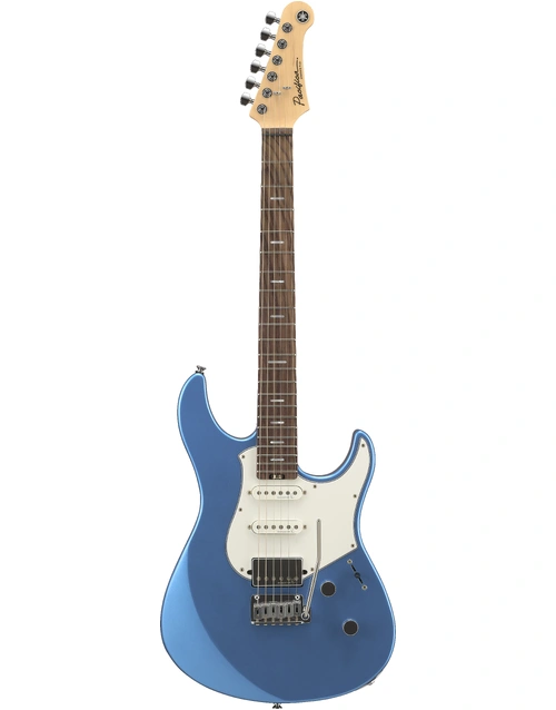 The Yamaha PACS+12 in Sparkle Blue blends versatile performance with a vibrant finish inspired by Southern California vibes. It features an alder body enhanced by Yamaha’s Acoustic Design technology for improved resonance, along with a slim satin-finished maple neck and rosewood fingerboard for superb playability. A Reflectone HSS pickup set, developed with Rupert Neve Designs, offers clear highs, solid lows, and expressive mids, with a push-pull tone control for coil splitting. Gotoh locking tuners and a 2-point tremolo bridge provide tuning stability and smooth vibrato response, rounding out a high-performance, gig-ready instrument.