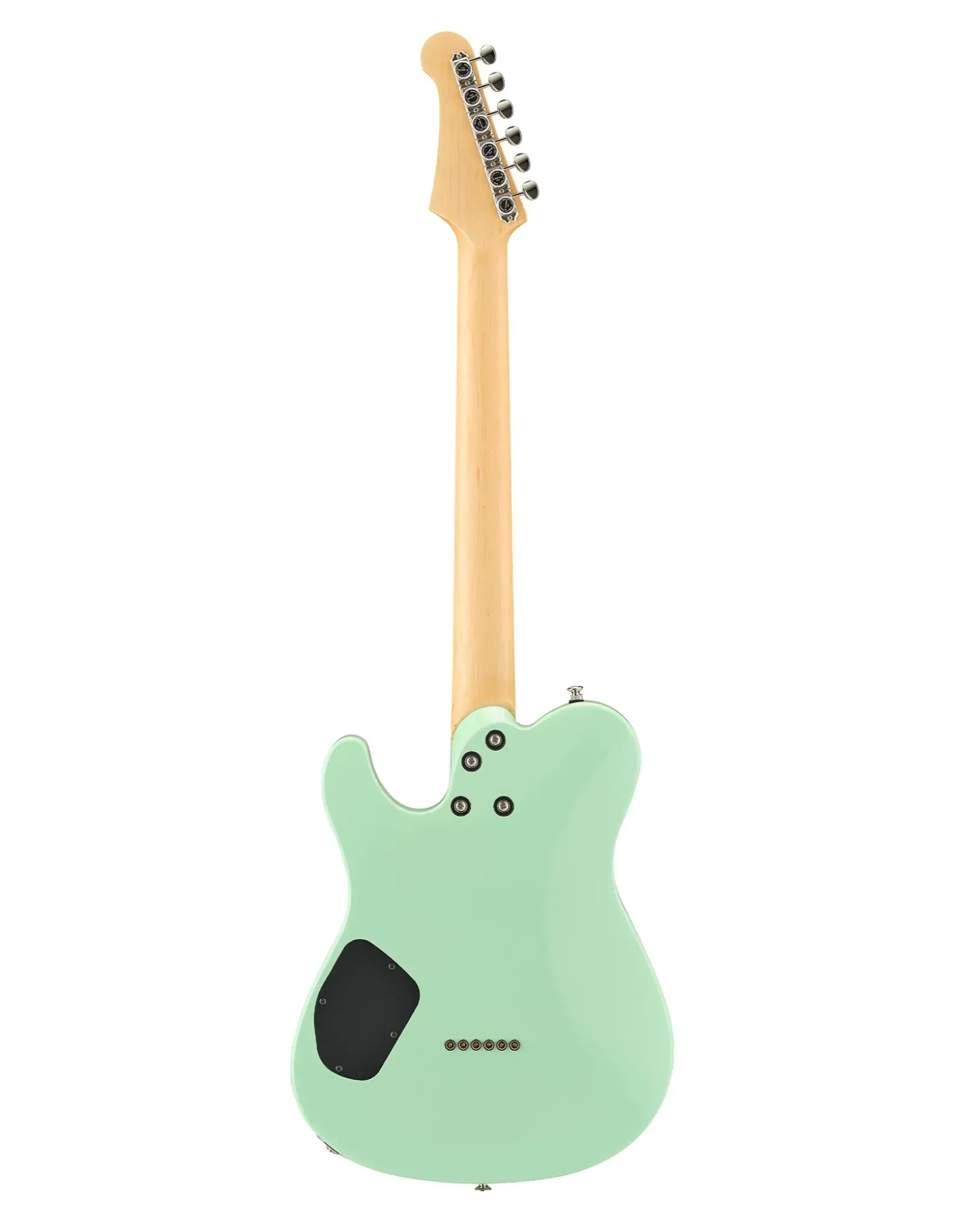An alder body shaped with Acoustic Design technology uses precise routing to increase vibration transfer through the neck, which improves resonance and sustain. The Rounded C profile maple neck, satin finish, and 12 inch rosewood fingerboard radius provide a smooth, controlled feel that balances comfort with fast movement across the fretboard. Medium jumbo stainless steel frets and Gotoh locking tuners support stable tuning and long-term durability during regular playing or live performance.