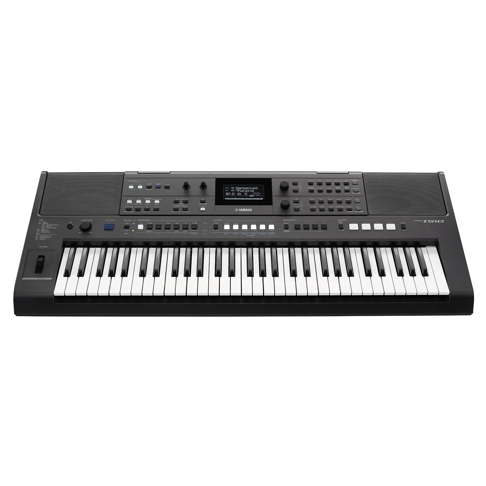 The Yamaha PSR-I500 is a 61-key portable keyboard designed specifically for Indian music performance and study, while still covering Western instruments and styles. It features 887 Voices, including 40 Indian instrument sounds, alongside 382 auto-accompaniment Styles with 60 Indian Styles built in. AWM Stereo Sampling tone generation and 64-note polyphony provide clear layering and consistent note playback, even when using dual voices or accompaniment.