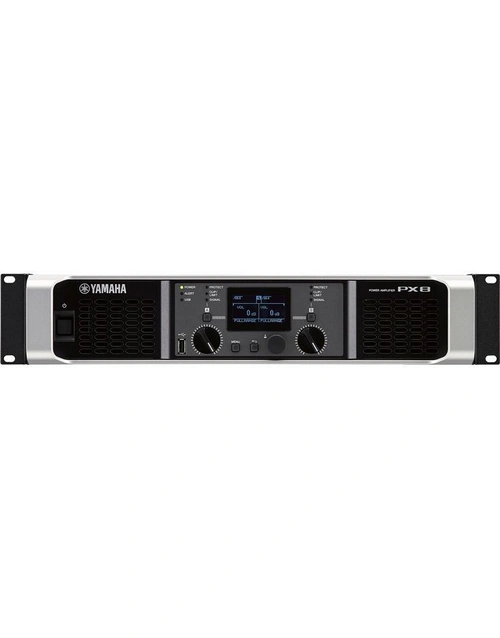 The versatile PX series power amplifiers combine intelligent processing with high output Class-D amplifiers to meet the requirements of a vast range of sound reinforcement environments. Onboard signal processing includes Yamaha's intelligent D-CONTOUR multi-band dynamic processing for the input signals as well as output processing which includes limiter, delay, filter, crossover & parametric EQ. Set-up is easy and intuitive with presets for Yamaha passive speakers (CBR, Club, Installation, and VXS/VXC series). 800W x 2 at 8 ohms. 1050W x 2 at 4 ohms.