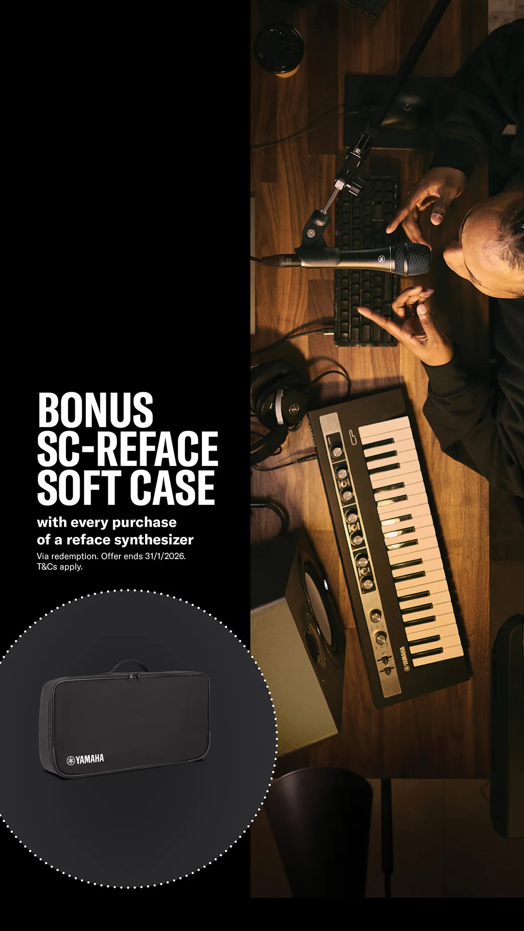 From 1st October 2025 to 31st January 2026, purchase a Reface CP and recieve a SC-REFACE Soft Case FREE! Retail value of free accessory is $64.99. To claim your free accessory, visit the relevant promotion page on Yamaha's website here. Register your Reface; this will require the serial number of your reface, as well as a copy of your receipt from Riffs & Licks Music. Your free soft case will be sent to you by Yamaha. See other Yamaha Bonus Offers here.