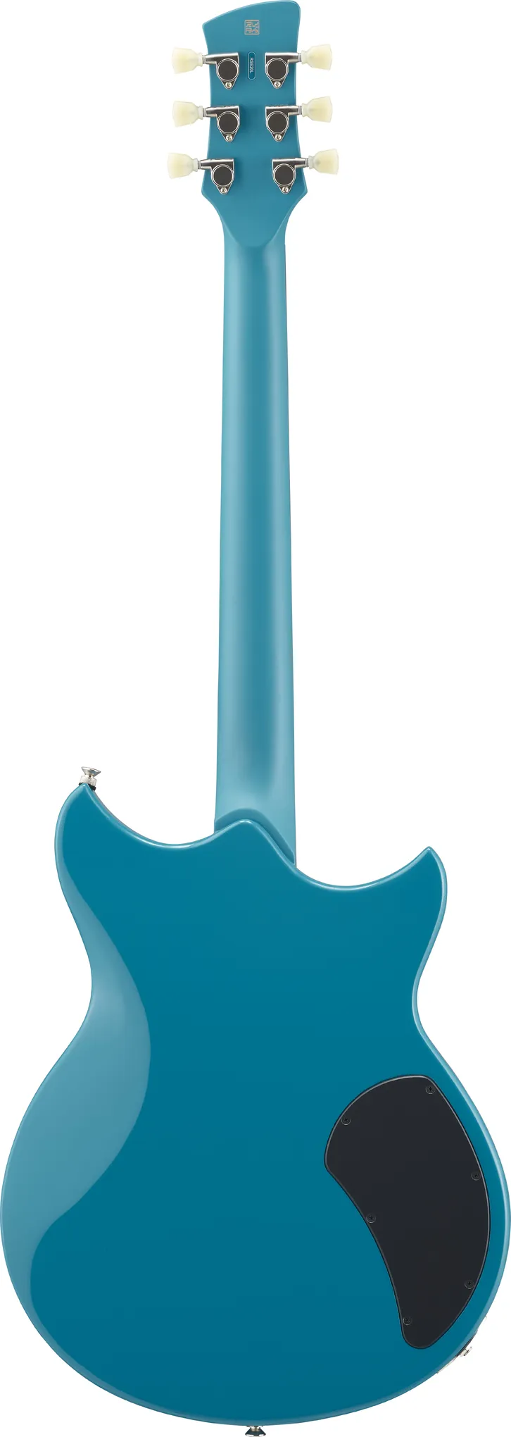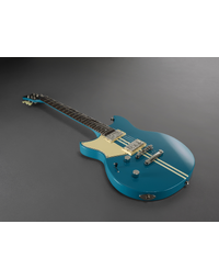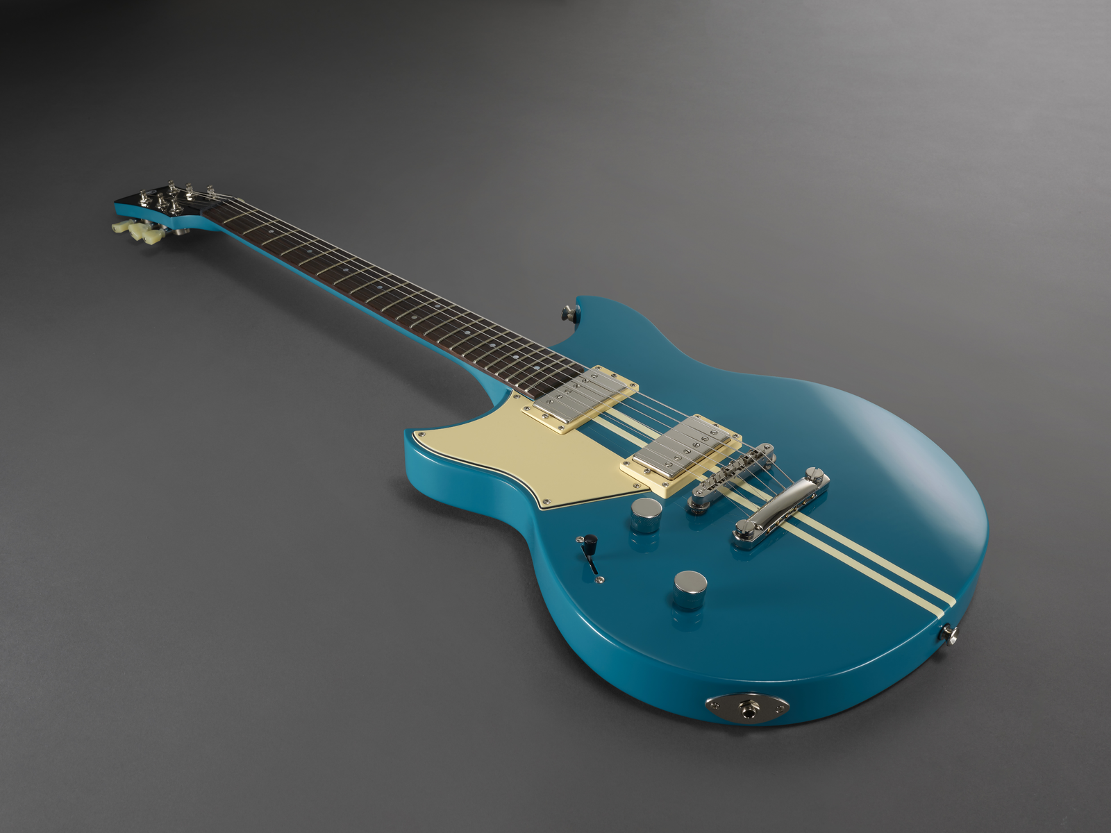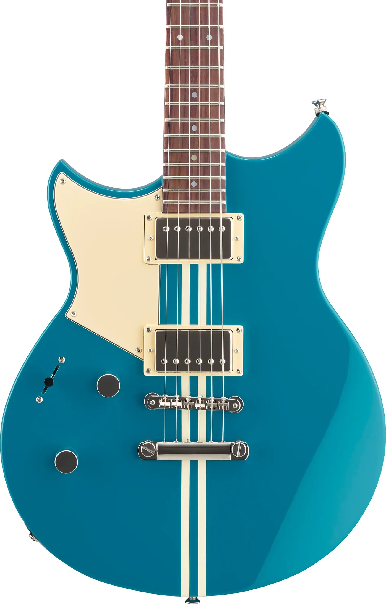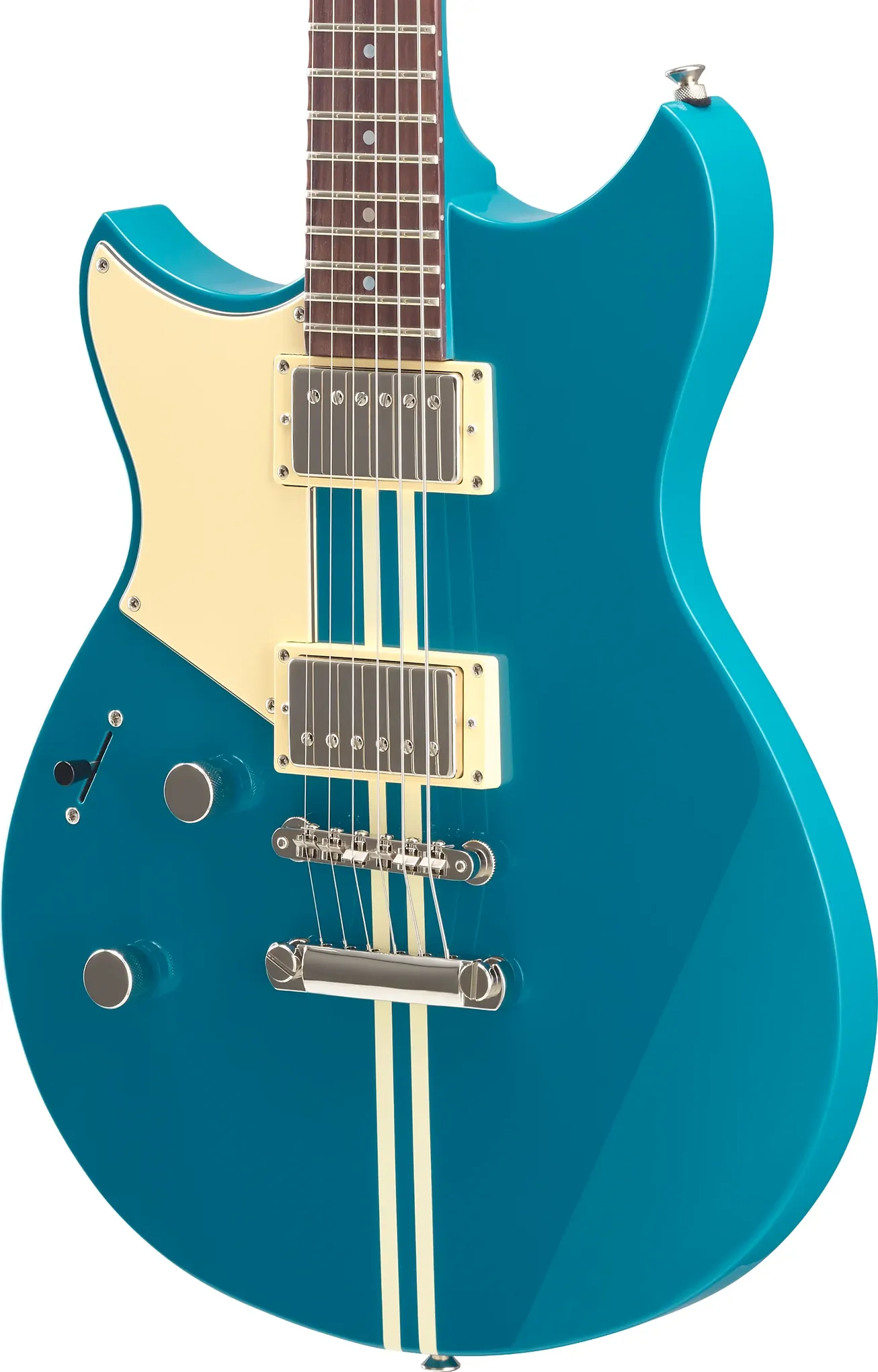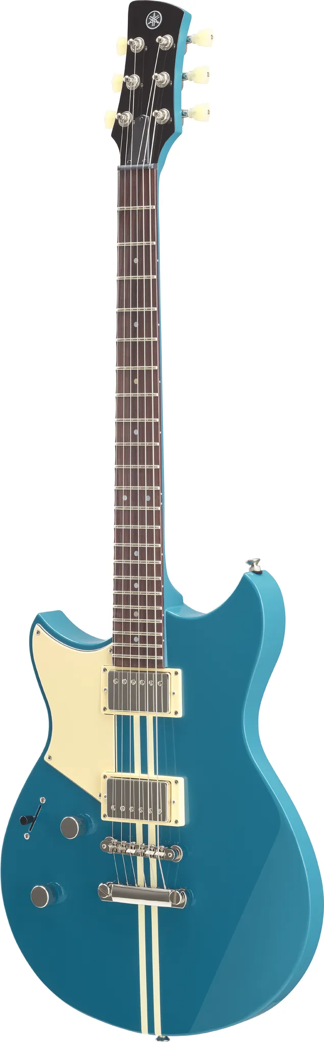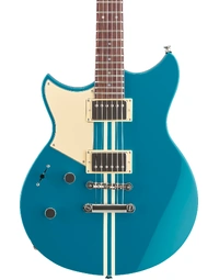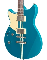 The Yamaha RSE20LSWB Revstar Element Left-Handed, finished in a café racer-inspired Swift Blue, features a chambered body, dual Alnico V humbuckers, and a push/pull Dry Switch high-pass filter for additional tonal versatility. The RSE20LSWB's chambered body is designed to sculpt tone and reduce weight, providing a clear, full sound and comfortable playing experience. The push/pull Tone control activates the Dry Switch high-pass filter for brighter tones without the added noise or power drop of conventional coil splits.