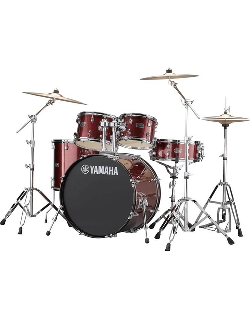 The Yamaha Rydeen drum set in euro sizes is perfect for a wide variety of musical styles. Featuring Yamaha's industry leading double braced hardware and ball mount tom holders, this euro configuration contains a 22"x16"bass drum, 10"x7" and 12"x8" mounted toms, a 16"x15" floor tom and a matching 14"x5.5"snare drum finished in Burgundy Glitter Finish. A full set of Paiste cymbals completes the kit including a 20" ride, 16" crash and 14" hi-hats.
