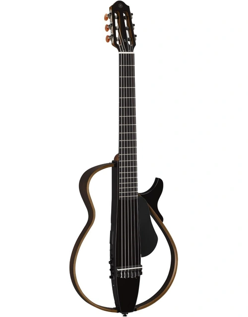The Yamaha SLG is the perfect instrument for practice, travel or stage use. Near-silent performance makes discrete practice simple, Yamaha's exclusive SRT-Powered pickup system gives incredibly natural acoustic tone through headphones or line-out, studio-quality on-board effects enhance your playing to perfection and line-in functionality makes jamming easy. Coupled with unique, striking looks and a collapsible body SLG200N lets you play whenever and wherever inspiration hits. SLG200NTBL has nylon strings, Rosewood fingerboard and onboard tuner. Translucent Black finish.