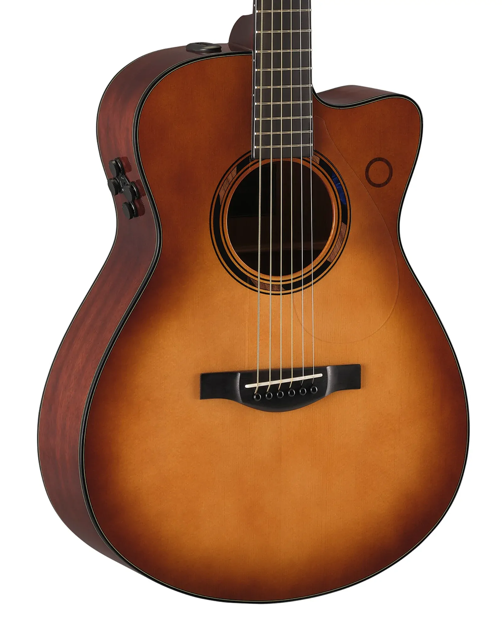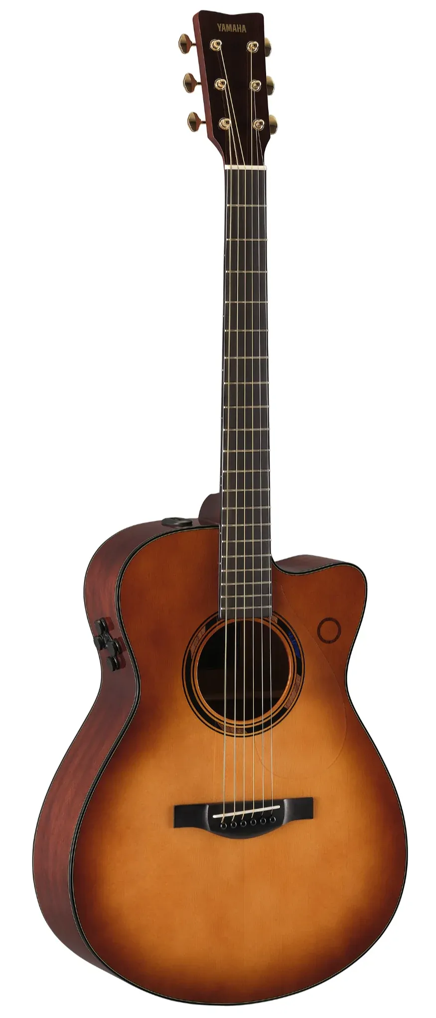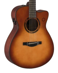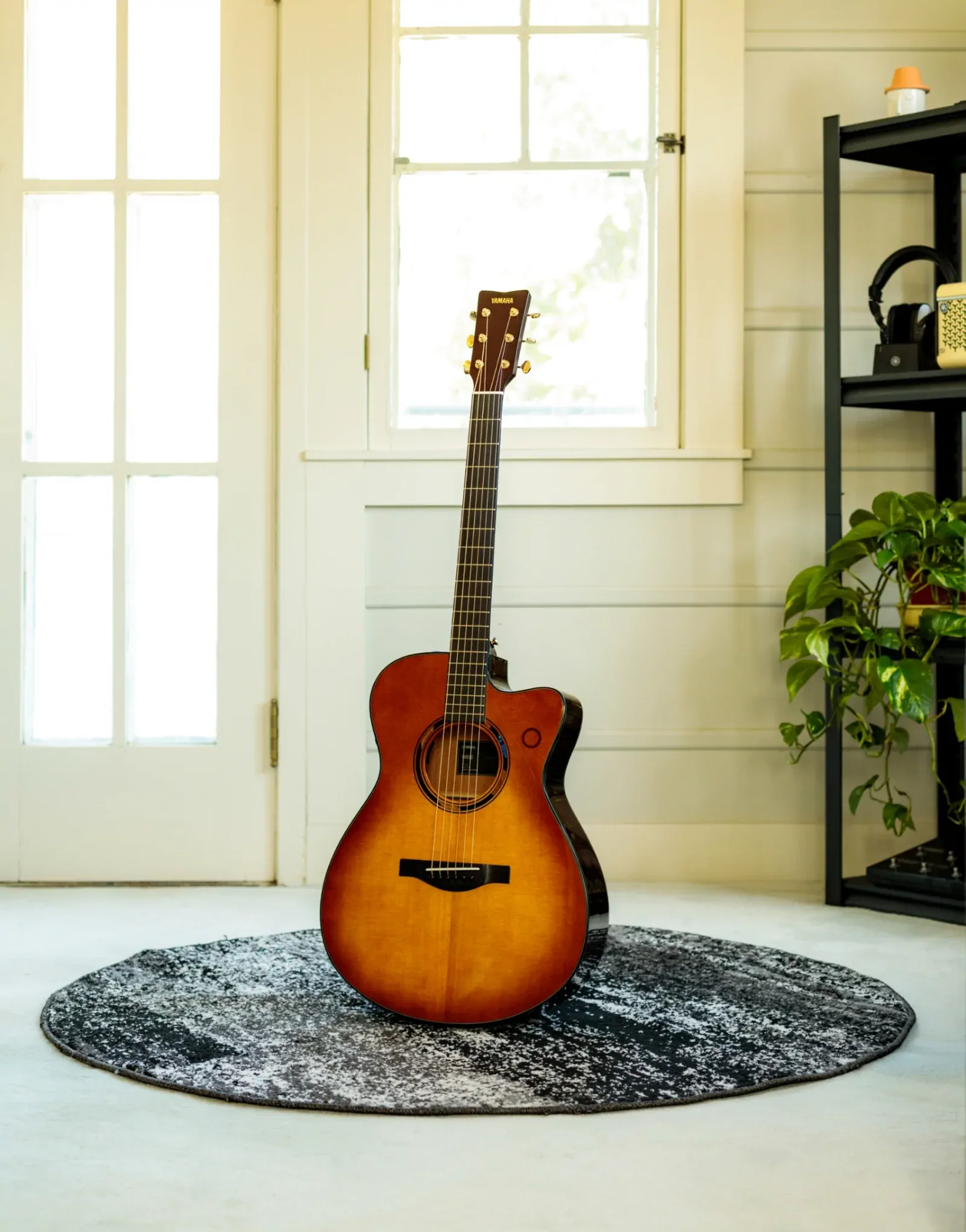 The Yamaha TAS3 C TransAcoustic in Sand Burst offers the same innovative features as the TAG3 model, now in a comfortable concert body with a stunning new finish. Its solid spruce top and mahogany back and sides produce a balanced, articulate tone—ideal for fingerstyle players or those seeking clarity and warmth in a smaller-bodied acoustic. Built-in effects including reverb, chorus, delay, and a looper let you create lush, ambient textures directly from the guitar, while Bluetooth audio playback and app integration make it easy to jam along or record. With up to 5.5 hours of playtime from a rechargeable battery and simple magnetic charging, this guitar is designed for effortless inspiration on stage, in the studio, or at home.
